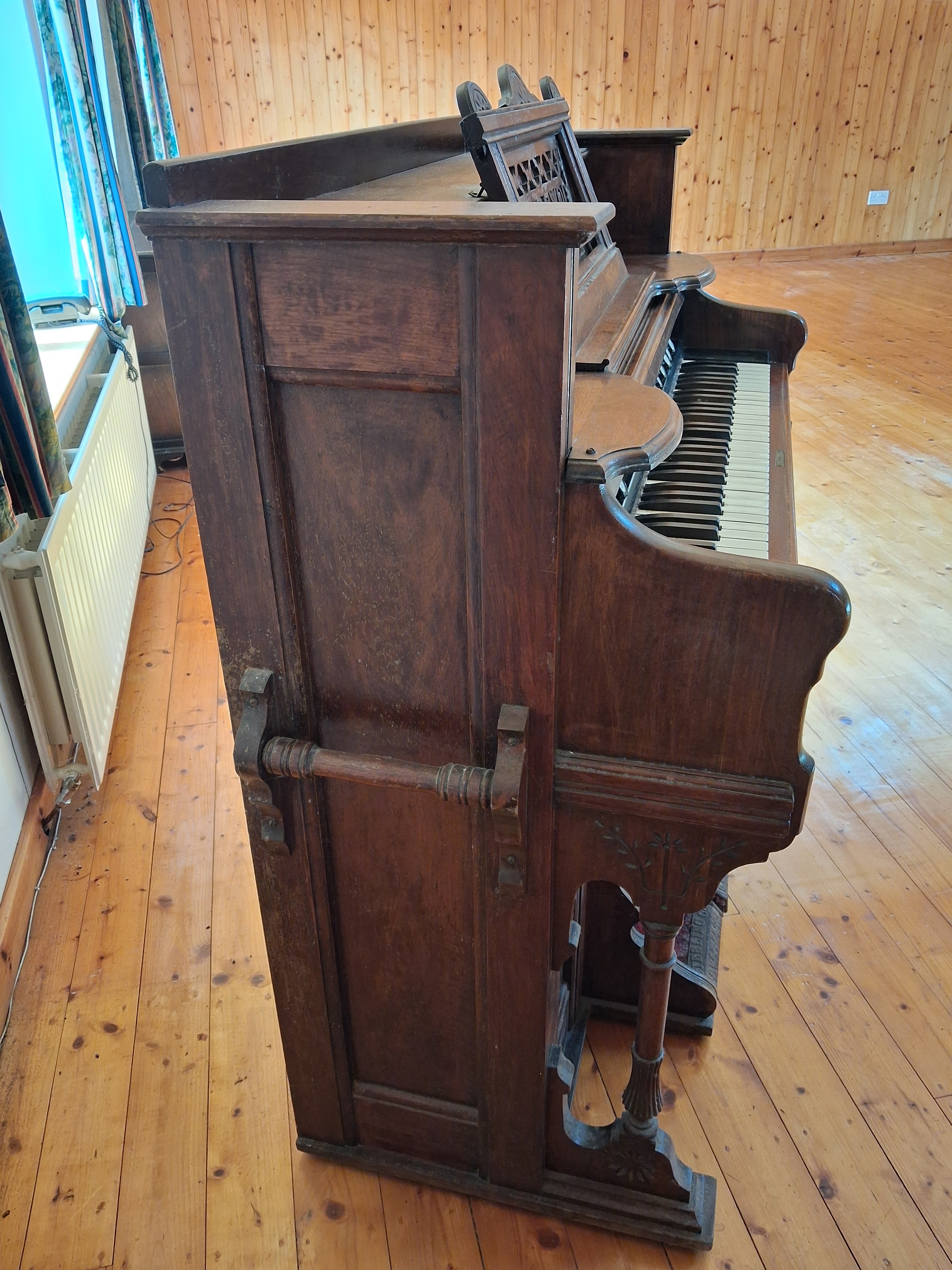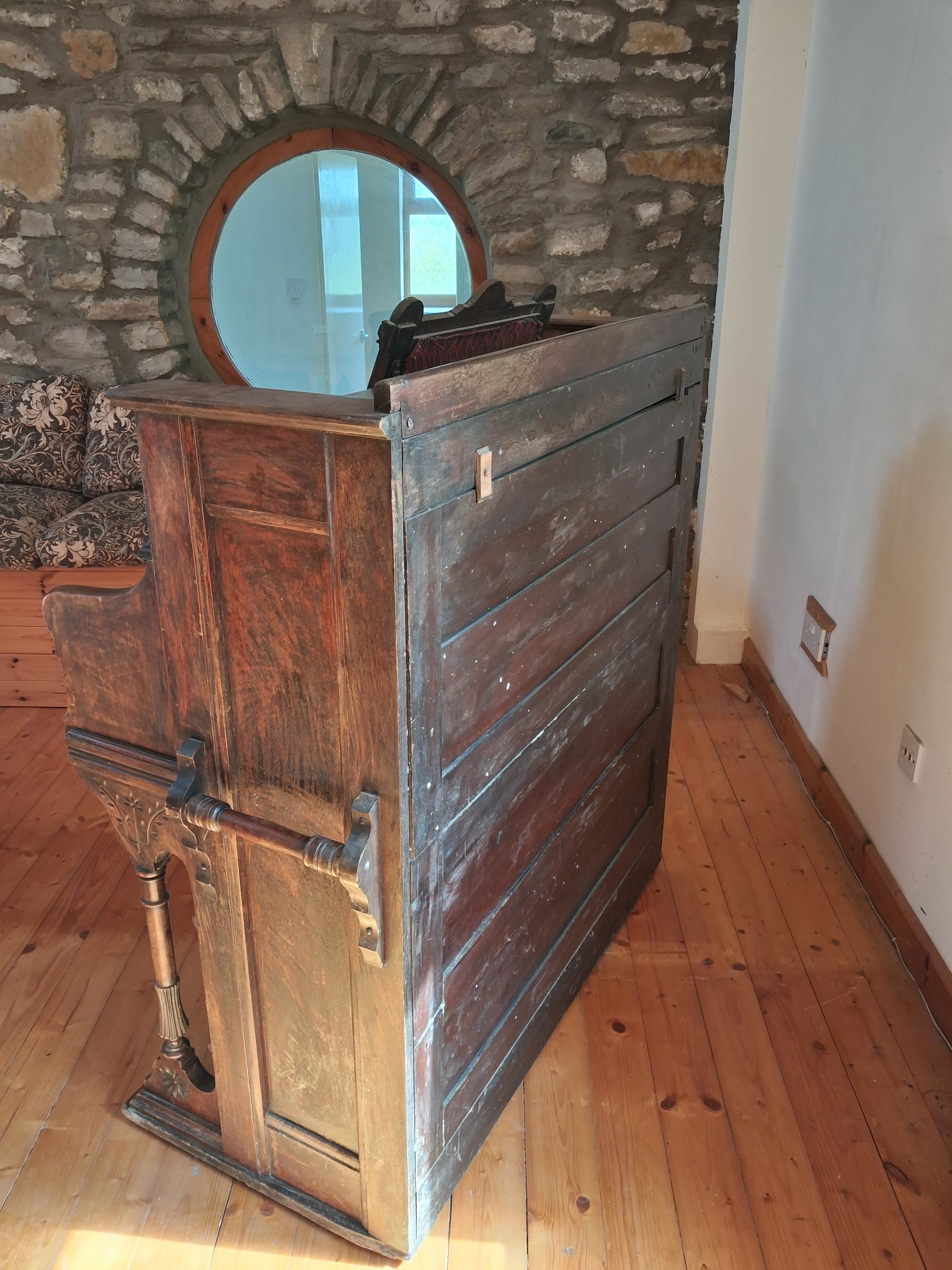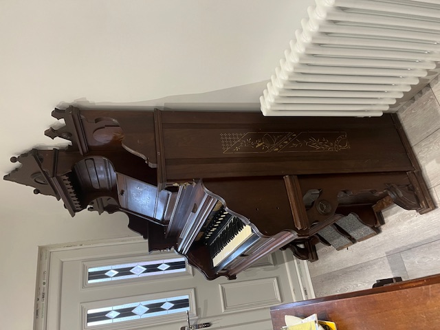 Victorian organ. Needs tender care. Works and has original stool. This was my father in laws in Scotland it was sent down in the 50’s.
