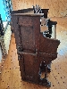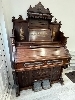 The body is in solid condition, with expected wear-and-tear due to its age & use. The wood is carved in a very attractive design. It now needs a bit of work on it - mainly the bellows have gone very weak, so you pedal away as fast as you can for very little speed and volume. Also 2 keys aren't sounding. The bodywork is sound, a bit rough around the edges, needs cleaning & touching up to be perfect. There was an upper decorative section to it with mirror, but this advert is just for the lower harmonium section itself, as shown in the photos.