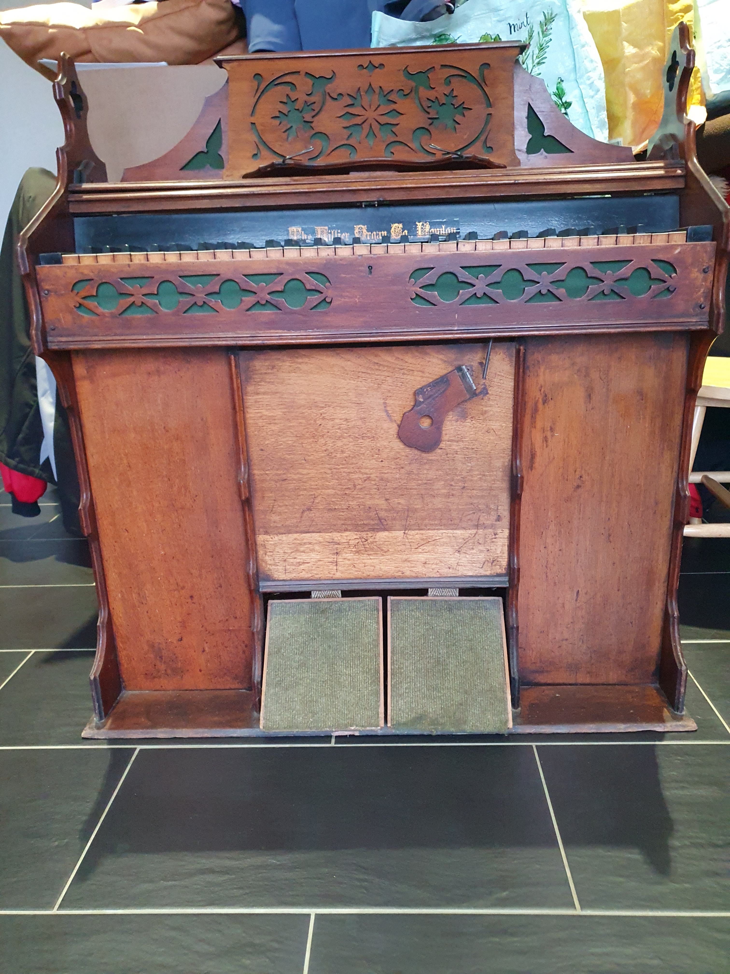 This is a Hillier Organ Co. pump organ in need of restoration.