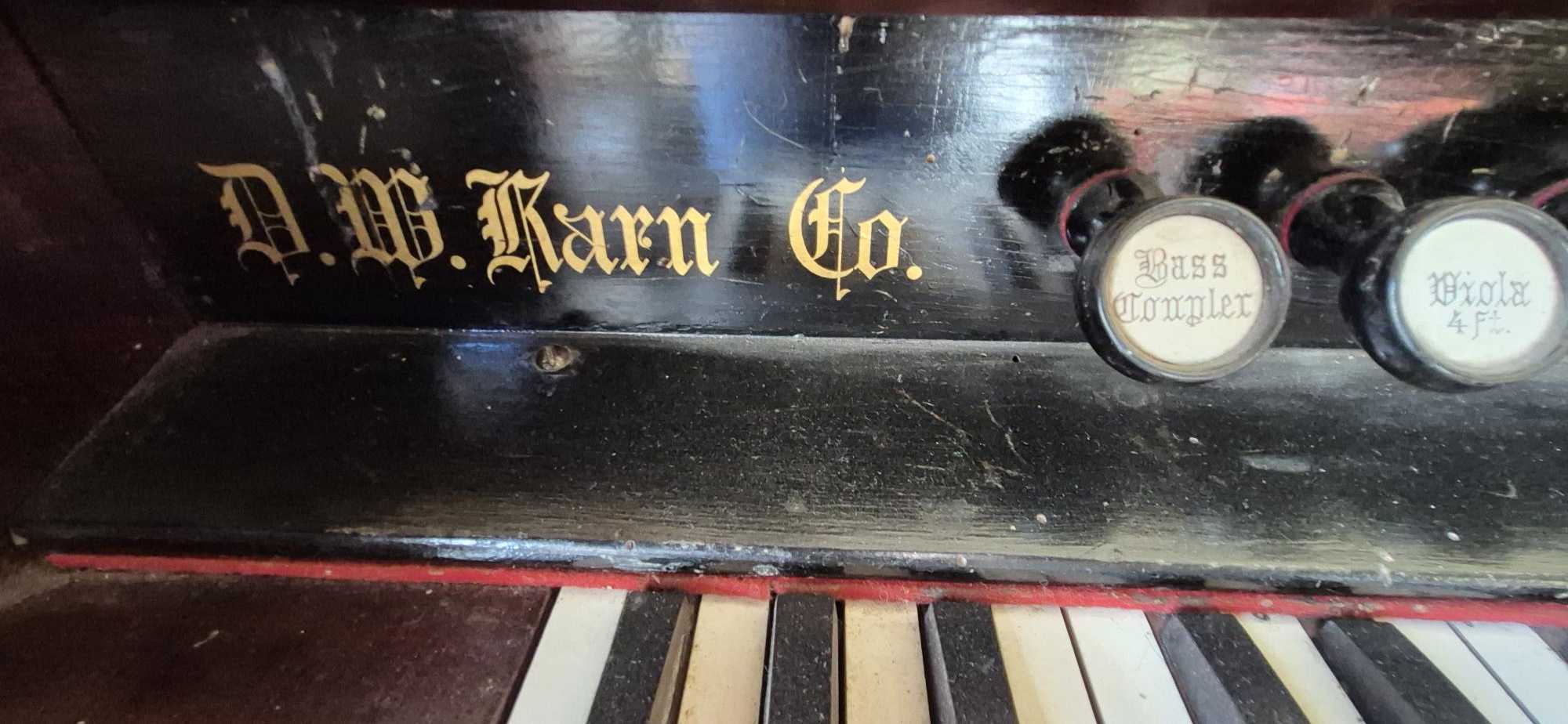 This DW Karn & Co reed organ came with our house so we don't have history on it. It generally looks to be in good condition and plays, but requires constant peddling and may need servicing/some level of restoration.